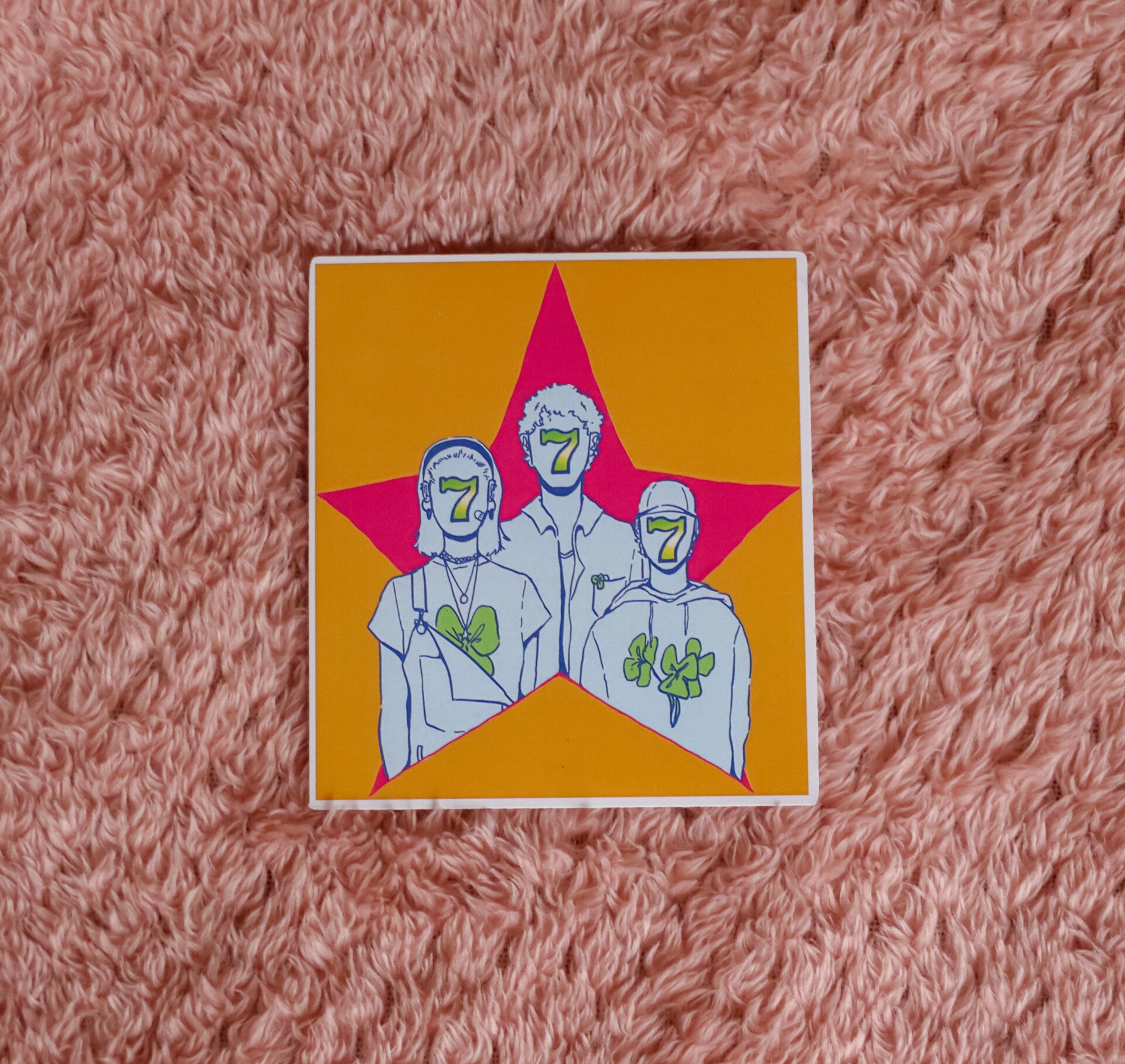 The 'Gelukszoekers' sticker is cut in the star contour. The star shape is the sticker, NOT the whole square.