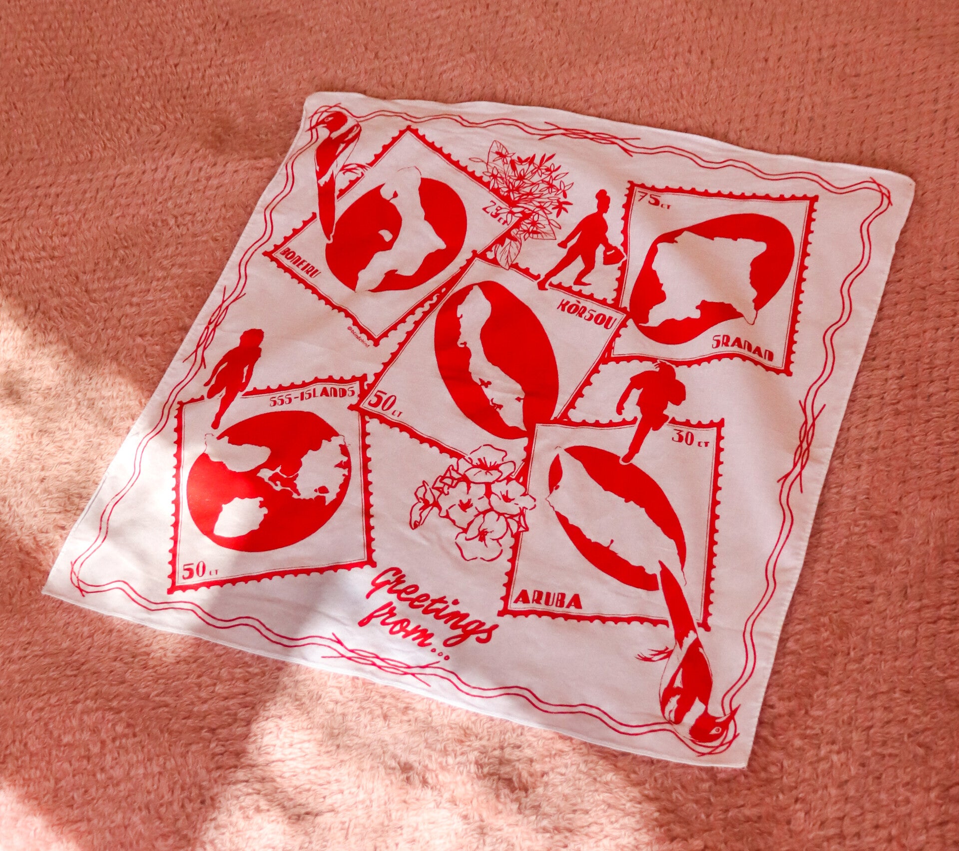 Red screenprint on white bandana, printed by me in Utrecht, NL. Bandana is approx. 52 x 52cm. Please allow for small differences between prints. Only 15 have been printed, these will NOT be reprinted.